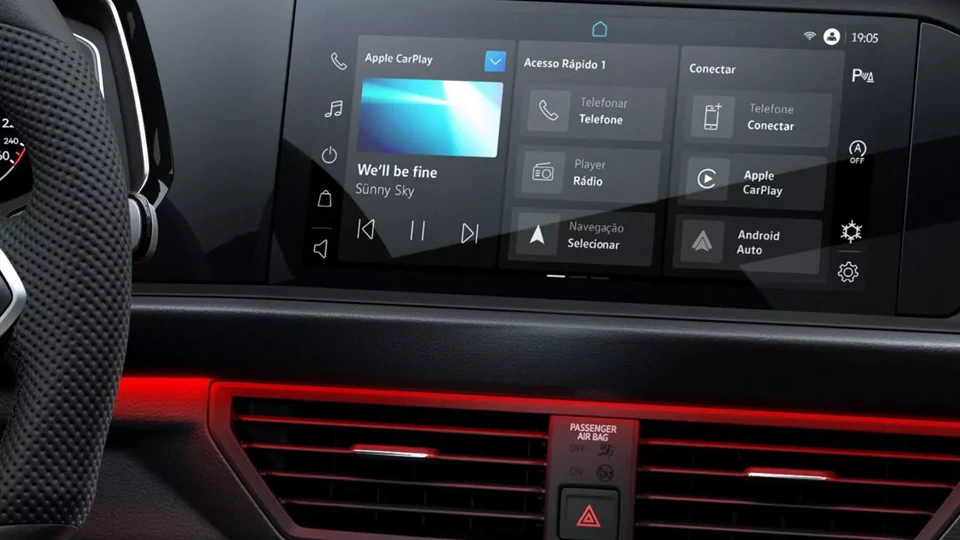 O sistema Infotainment VW Play permite conectividade avançada com os smartphones por meio do App-Connect. Com tela colorida sensível ao toque (touchscreen) de 10,1”, oferece ampla interatividade, com várias opções de informação, entretenimento, configuração do veículo por meio da tela, como o perfil de condução, além de visual moderno e tecnológico.