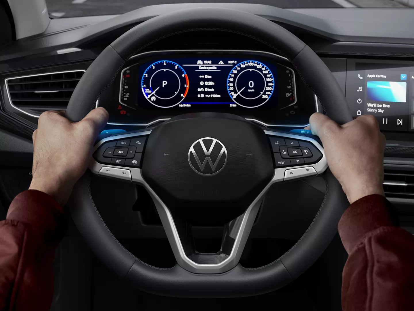 O Polo chega com diversos itens digitais e intuitivos como Active Info Display, VW Play e o Ar-condicionado Climatronic Touch.