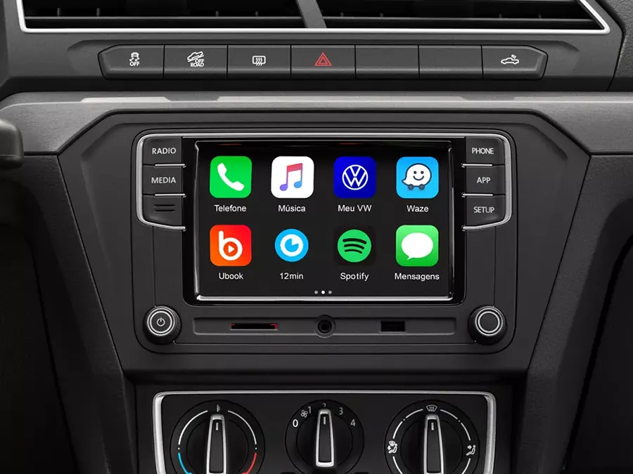 O sistema multimídia infotainment possui tela colorida de alta definição e possui conectividade com smartphones por meio da tecnologia App-Connect.