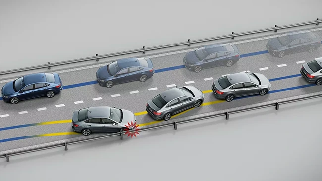 Sistema de frenagem automática pós colisão – Em caso de colisão, os freios do carro são acionados automaticamente, evitando que o veículo sofra novo impacto.